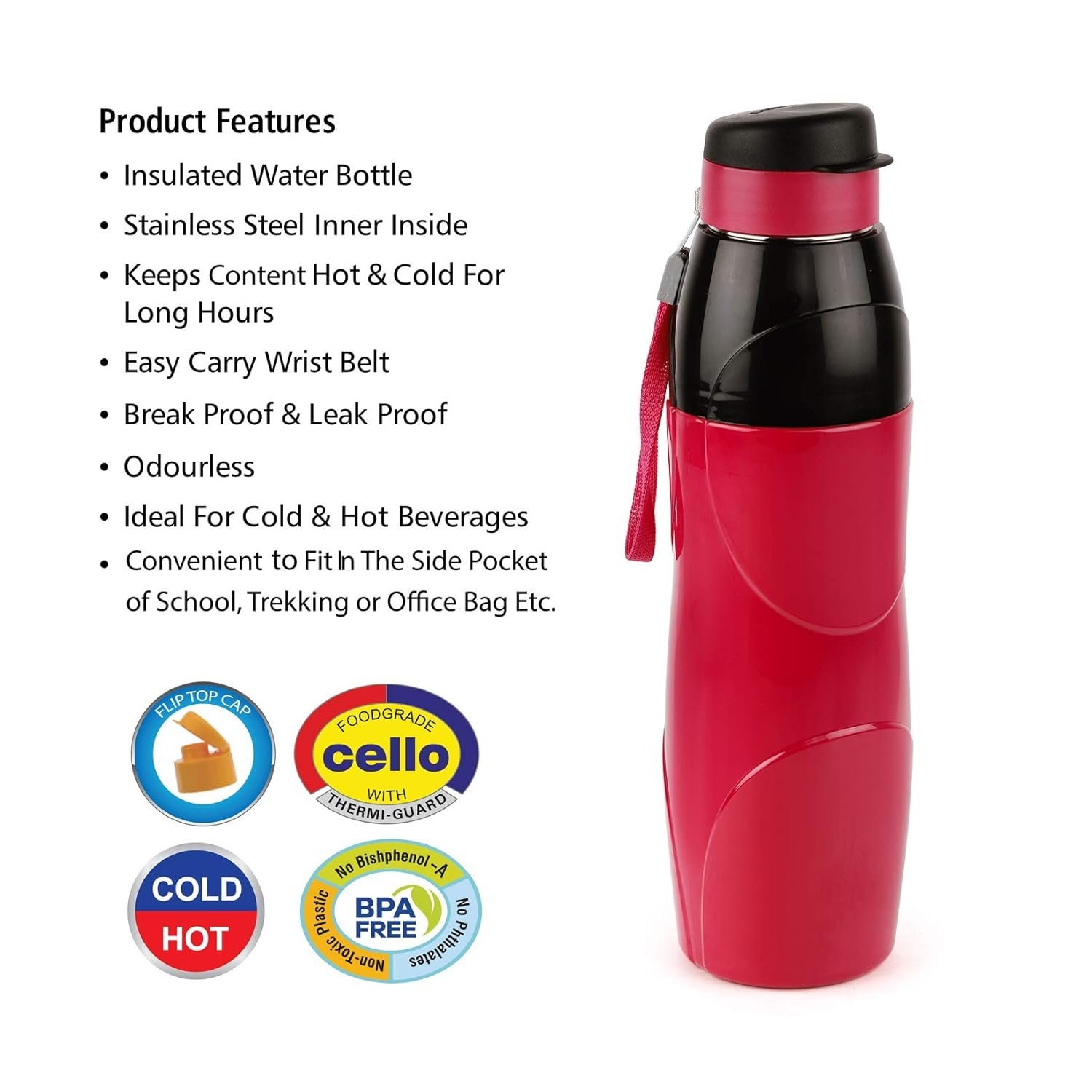 Cello Puro Steel-X Lexus 900 | Water Bottle with Inner Steel and Outer Plastic | Insulated Water Bottle | 900 ml | Colour May Vary