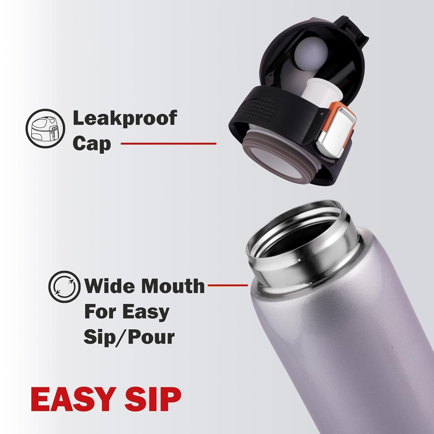 - The bottle features a wide mouth design, allowing for easy filling, cleaning, and adding ice cubes. The bottle is equipped with a sturdy one-touch lid, preventing leaks and spills, making it reliable and convenient for travel, home, and office use.