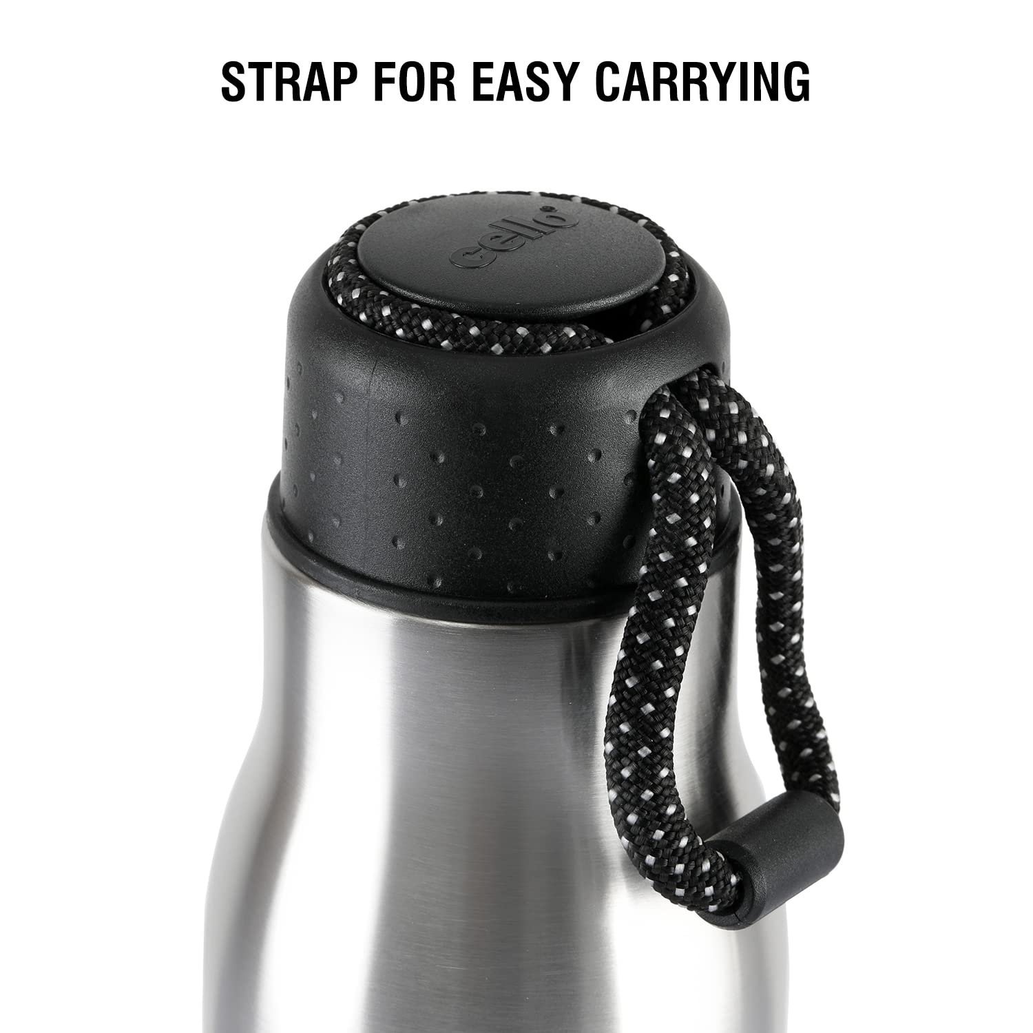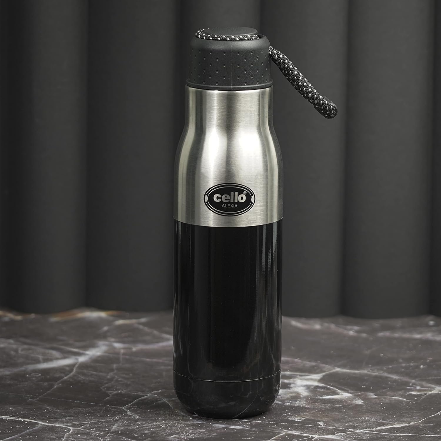 Cello Alexia Insulated Flask | Hot and Cold Stainless Steel Water Bottle | Double Walled Carry Flask for Travel, Home, Office, School | 800 ml, Black