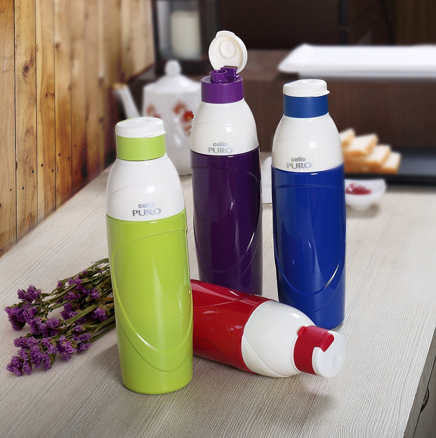 Cello Puro Classic Plastic Water Bottle Set, 900ml, Set of 2, Assorted