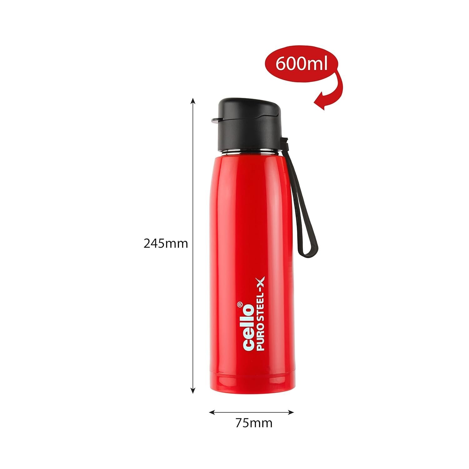 Cello Puro Steel-X Cooper 600 |Water Bottle with Inner Steel and Outer Plastic | Rust Proof and Leak Proof | Wide Mouth for Easy Cleaning | 600ml | Colour May Vary