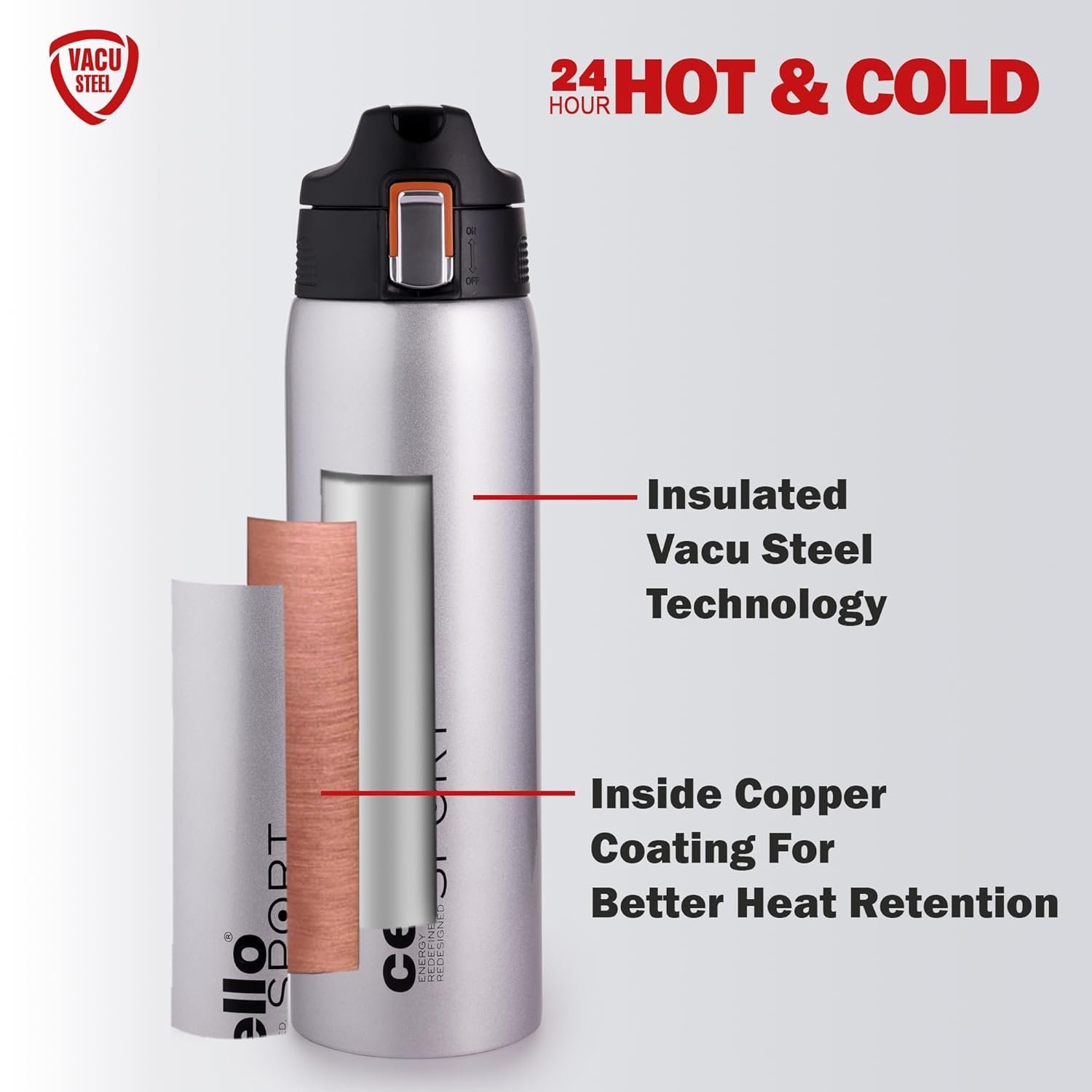 - Cello uses 18/8 high grade premium quality stainless steel and it has a 'Thermoseal' layer with copper coating to give you one of the best performances for heat retention.